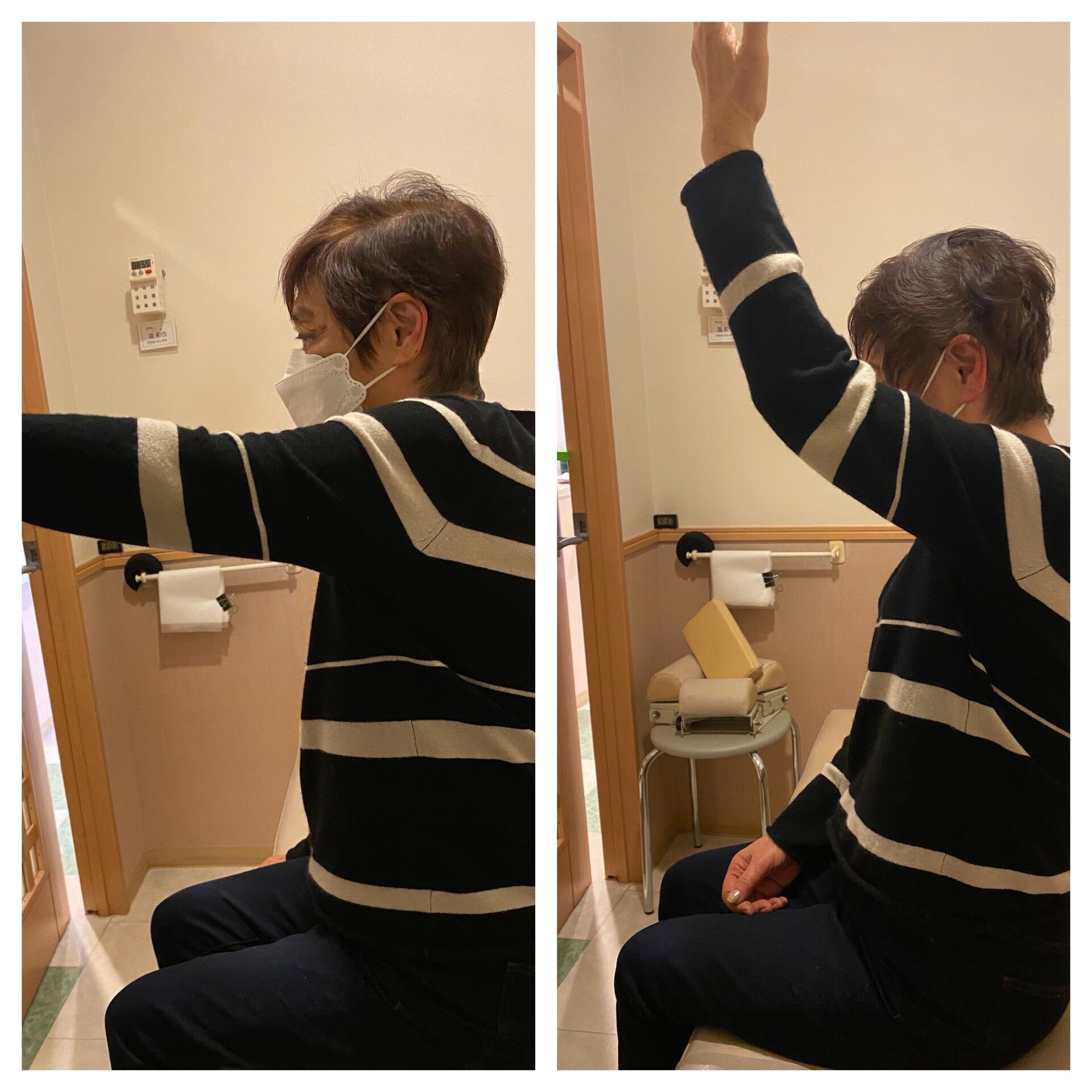腕が上がらないのと、カーテンを引いたりする動き、反対側に腕を廻せない。